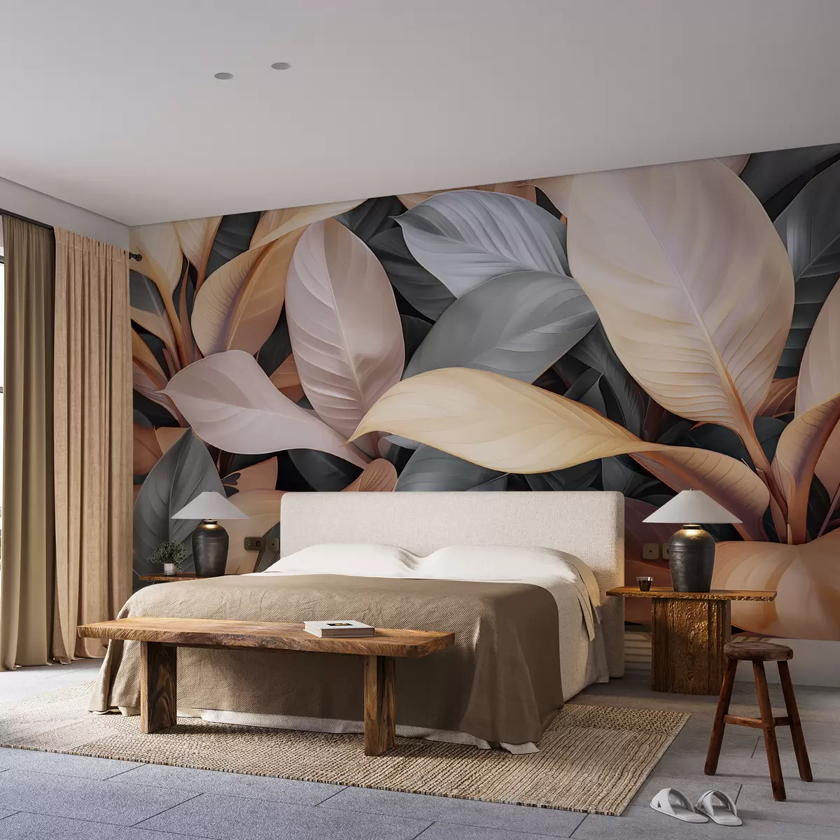 Fototapety Veľké tropické listy v modrej a béžovej farbe Nr. w01587v2