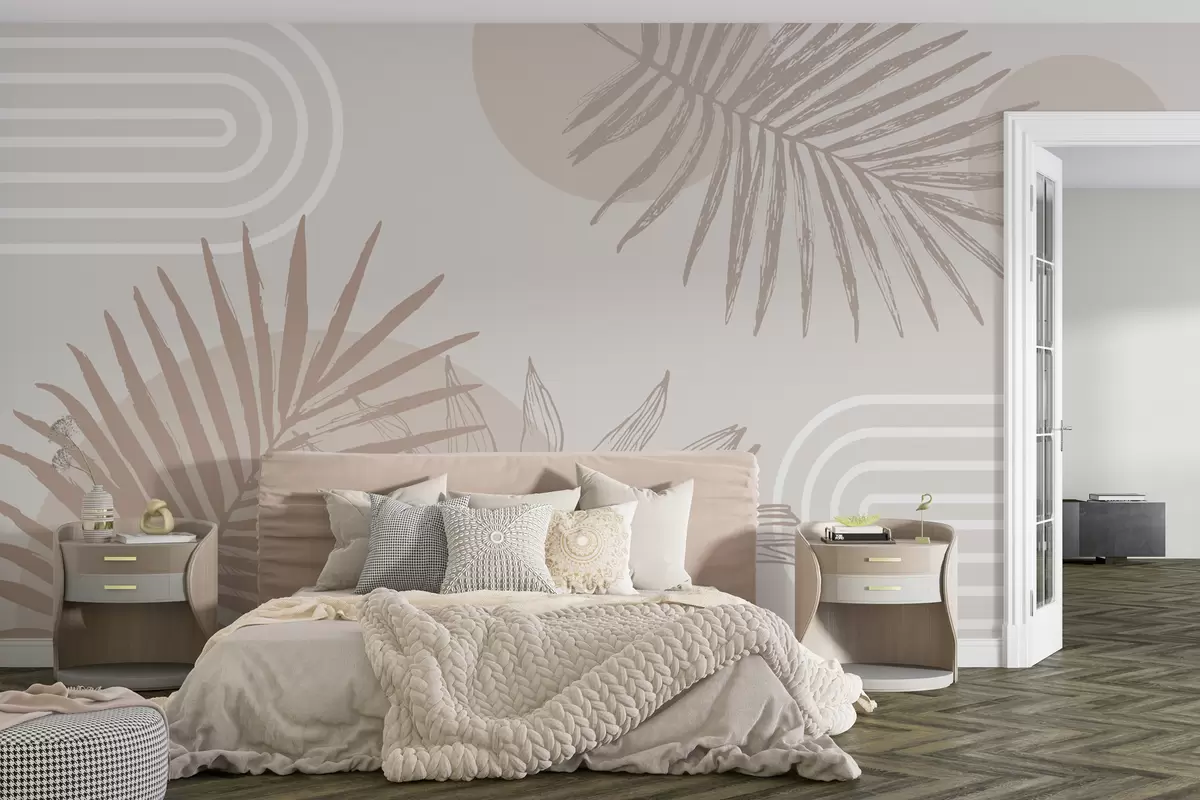 Fototapety Geometrická tapeta s palmovými listami v boho štýle Nr. w01601