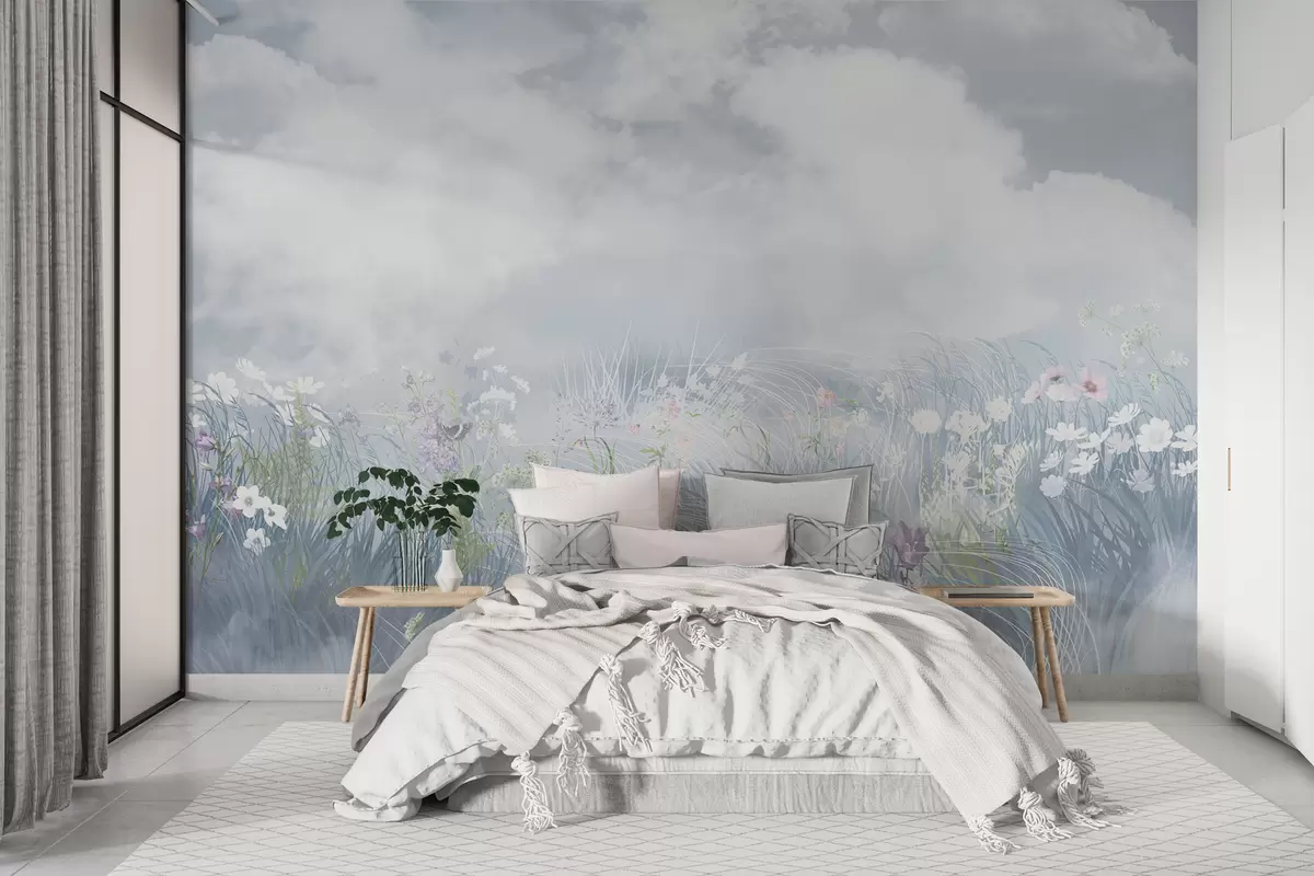 Fototapety Divoké kvety a trávy s balkánskou oblohou a mrakmi Nr. w01624