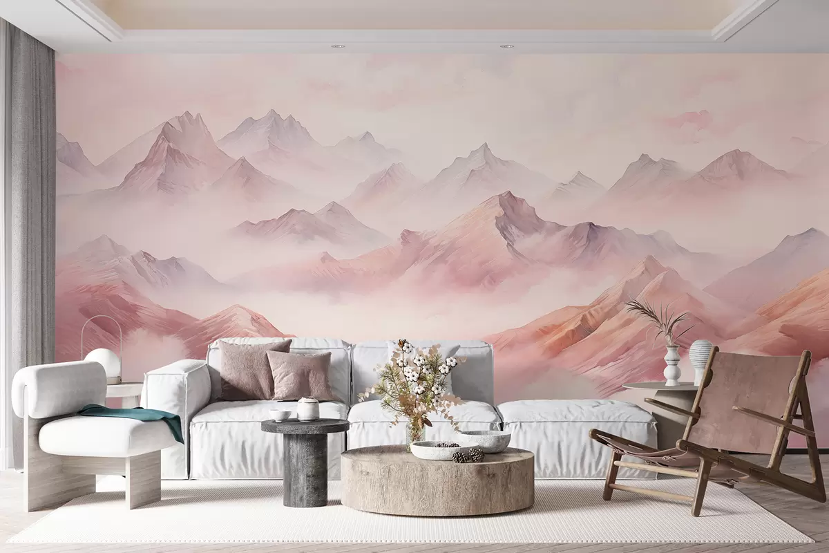 Fototapety Hory s mrakmi, akvarel, jemné béžové a ružové farby Nr. w01790