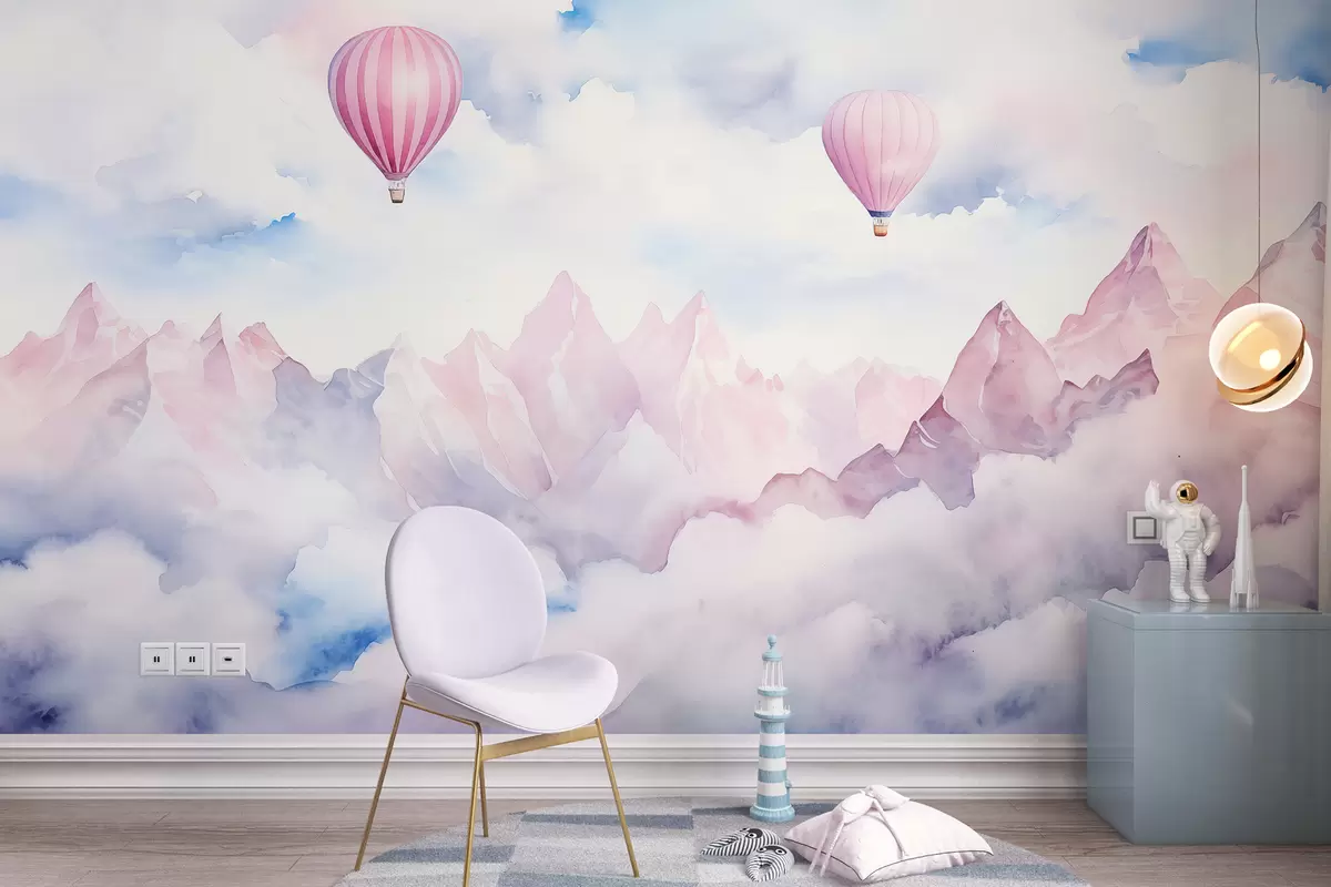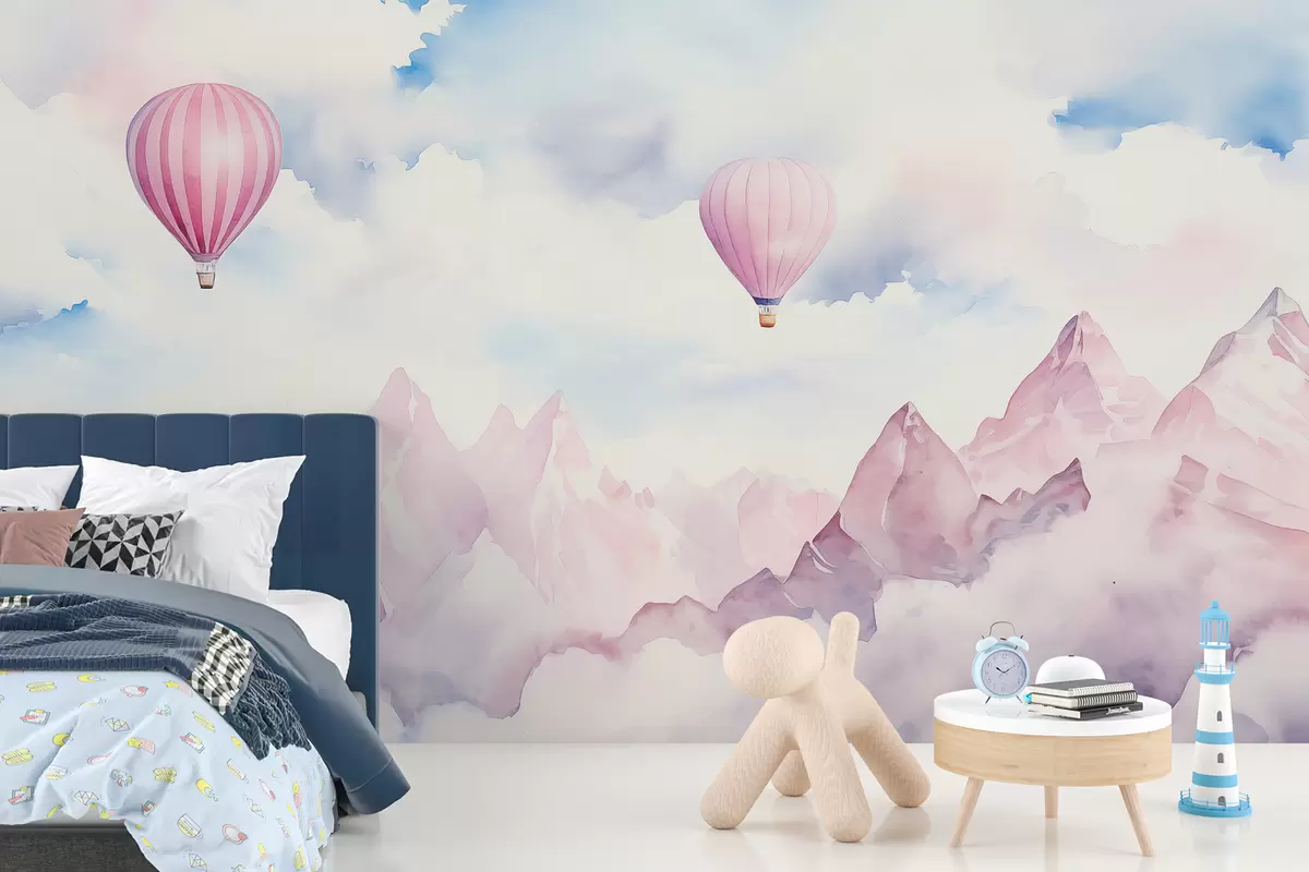 Fototapety Krásna horská krajina so vzduchovými balónmi, akvarel Nr. w01792