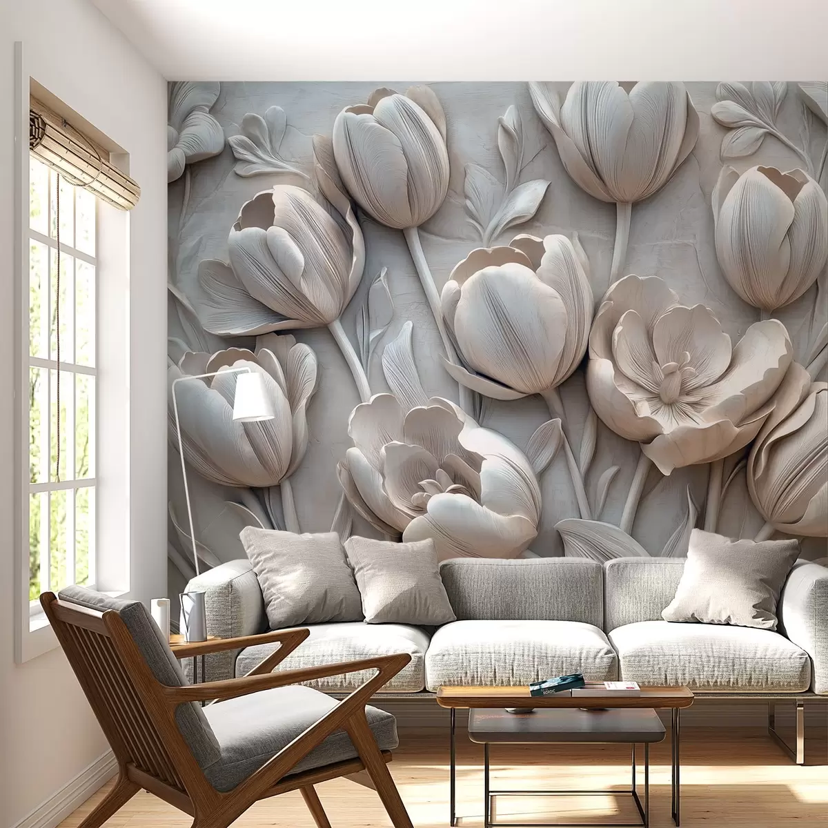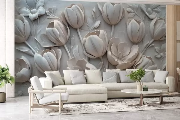 Fototapety 3D kvetinové umenie s pôvabnými tulipánmi v sivej farbe Nr. w01851v1