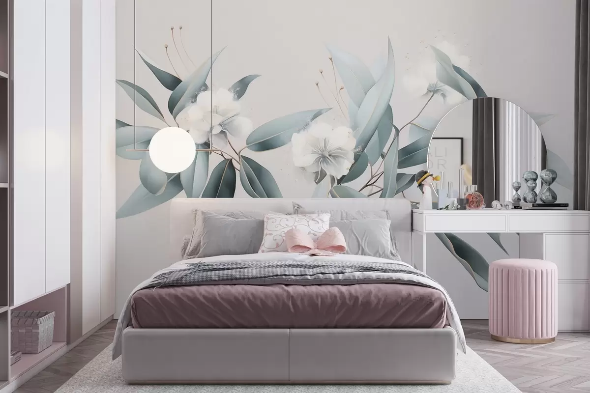 Fototapety Bavlnené kvety, príroda, akrylová kresba, jemné sivé farby Nr. w01884