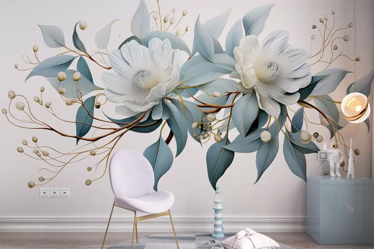 Fototapety Krásne akrylové kvety s listami a bobuľami, realizmus Nr. w01887