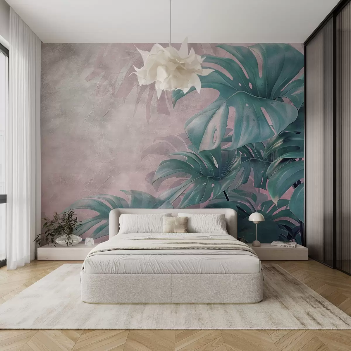 Fototapety Veľké listy monstery na jemnom ružovom pozadí Nr. w01901