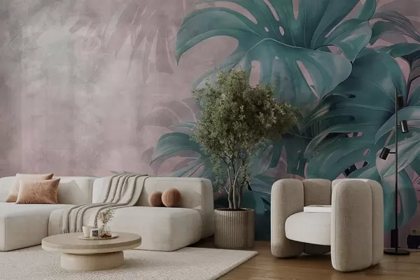 Fototapety Veľké listy monstery na jemnom ružovom pozadí Nr. w01901