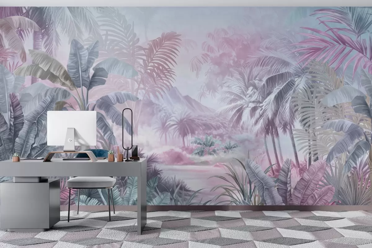 Fototapety Dažďový prales v jemných modrých a ružových tónoch Nr. w01931v2