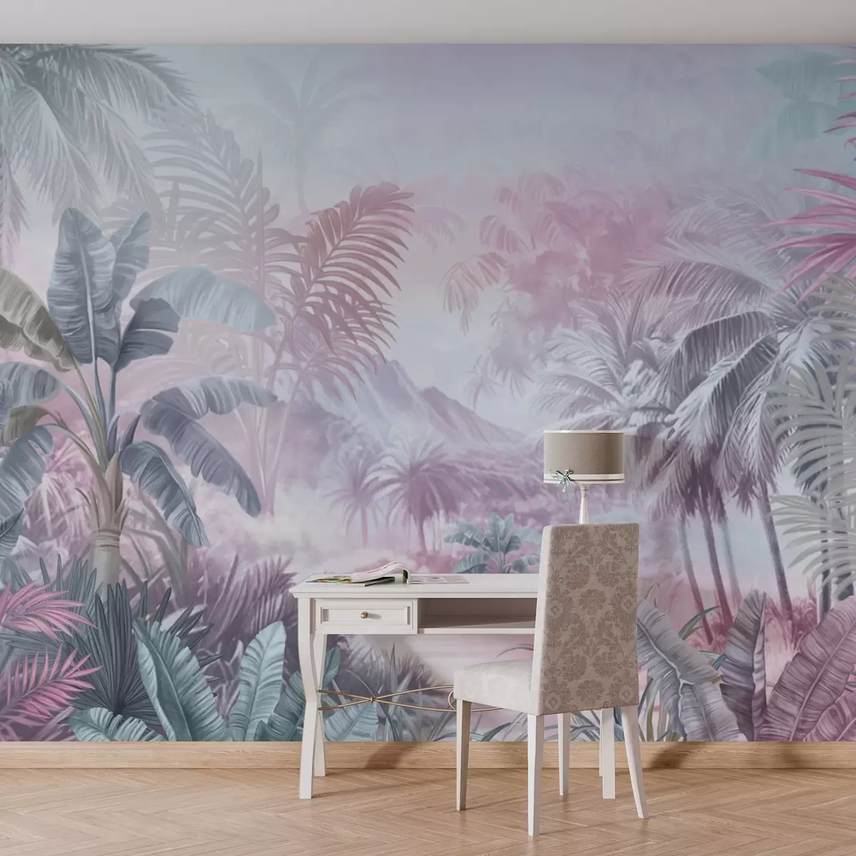 Fototapety Dažďový prales v jemných modrých a ružových tónoch Nr. w01931v2