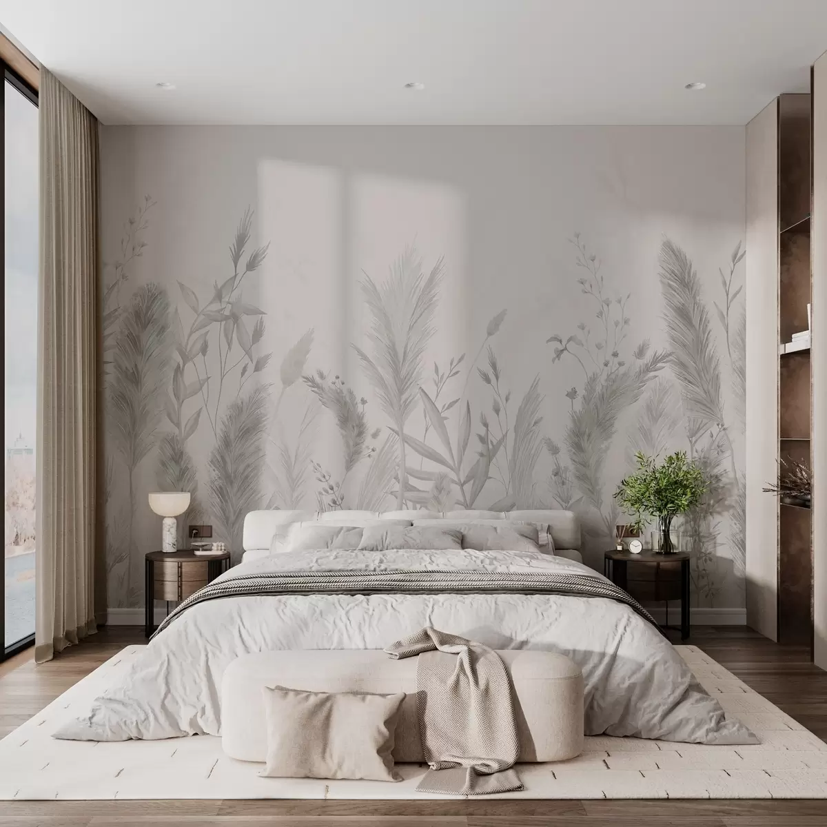 Fototapety Vysoké poľné trávy a kvety v neutrálnych farbách Nr. w02004