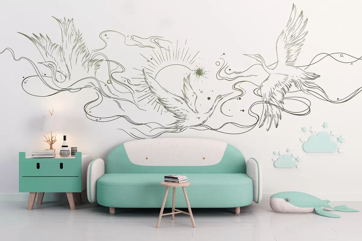Fototapety Lietajúce vtáky, lineárna kresba, minimalizmus, šedá paleta farieb Nr. w02022v1