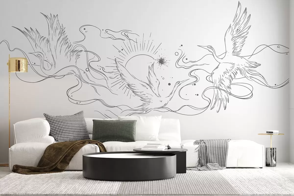 Fototapety Lietajúce vtáky, lineárna kresba, minimalizmus, šedá paleta farieb Nr. w02022v2