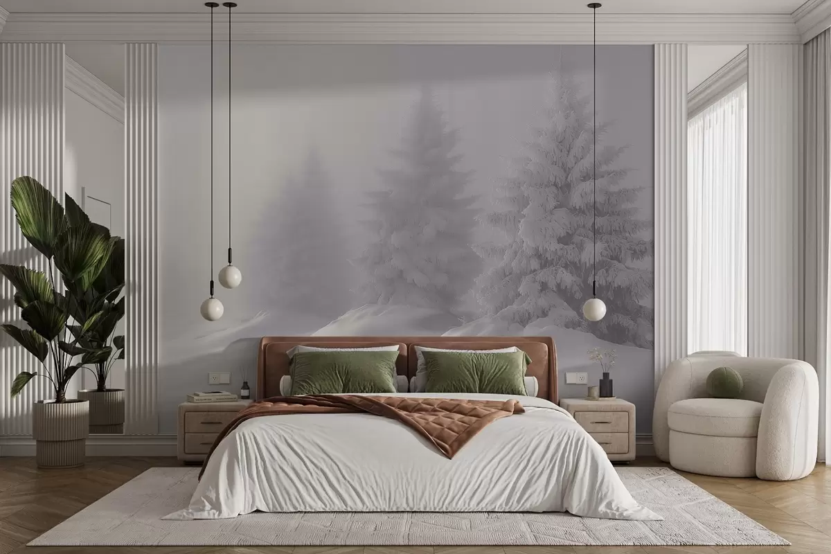 Fototapety Zasnežené jedle v samote hmlistého rána Nr. w02065