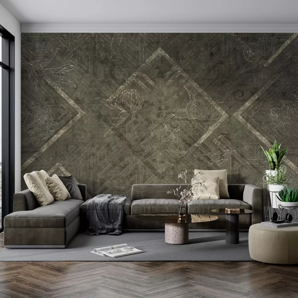 Fototapety Grunge textúra s kvetinovými vzormi v žltej farbe Nr. w02079