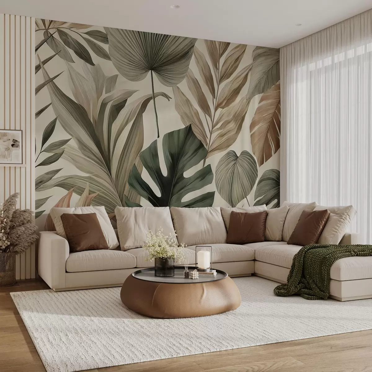 Fototapety Veľké tropické listy v zdržanlivých jemných pastelových odtieňoch Nr. w02082