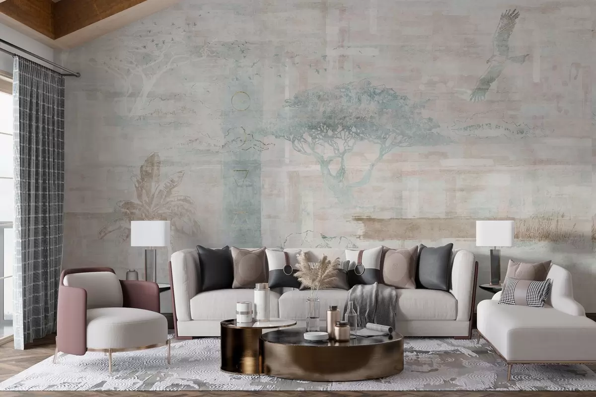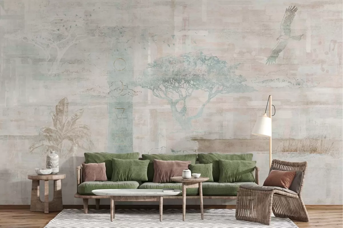 Fototapety Vintage dizajn s efektom grunge so stromami, orlom a geometrickými prvkami Nr. w02130