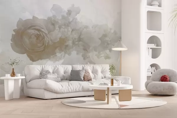 Fototapety Ruža v dyme. Tapeta je inšpirovaná vzdušnými vzormi skazy a ruže. V béžových odtieňoch. Nr. w02138v1