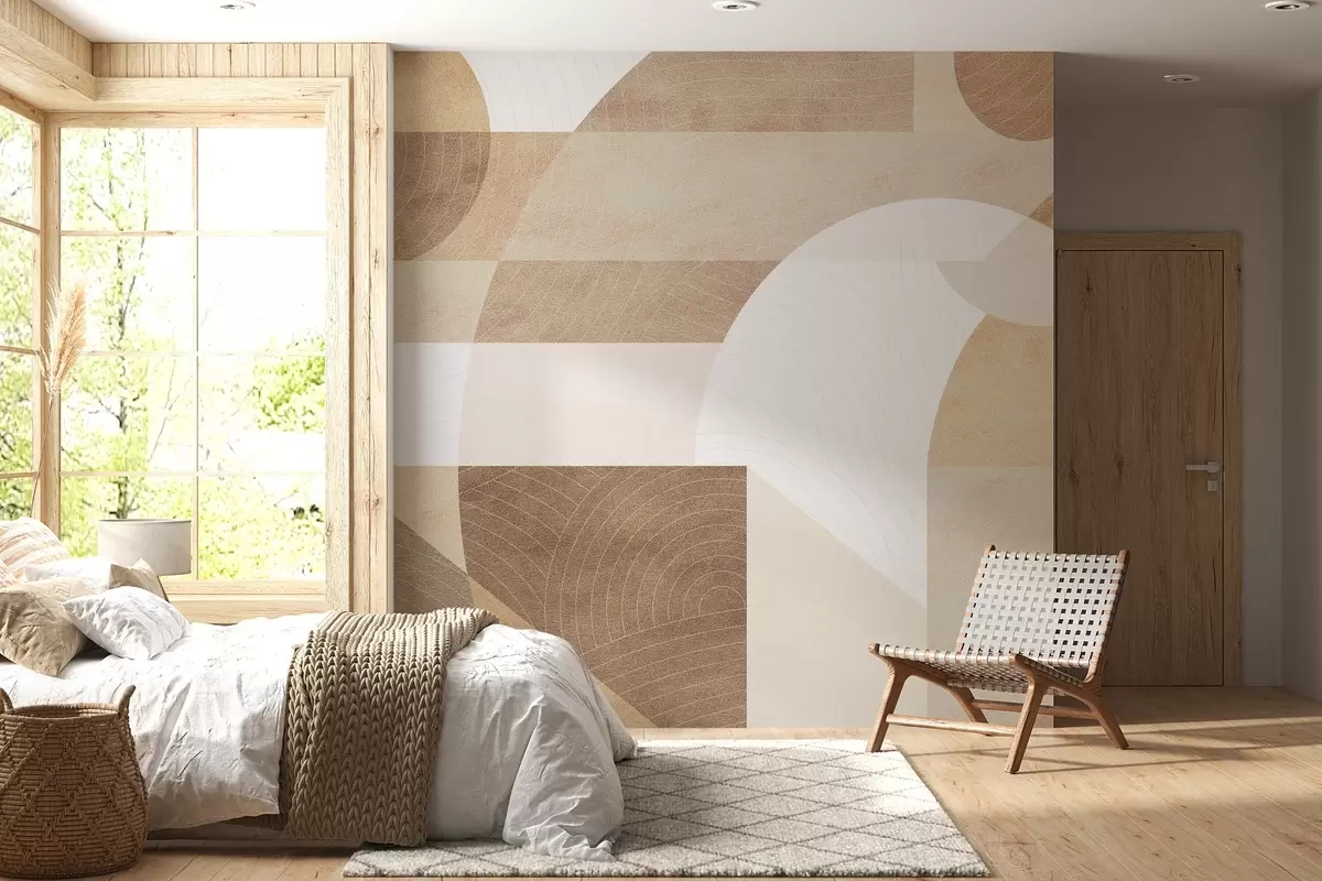 Fototapety Moderná geometria s abstraktnými tvarmi, textúrované detaily v béžových a hnedých tónoch Nr. w02140