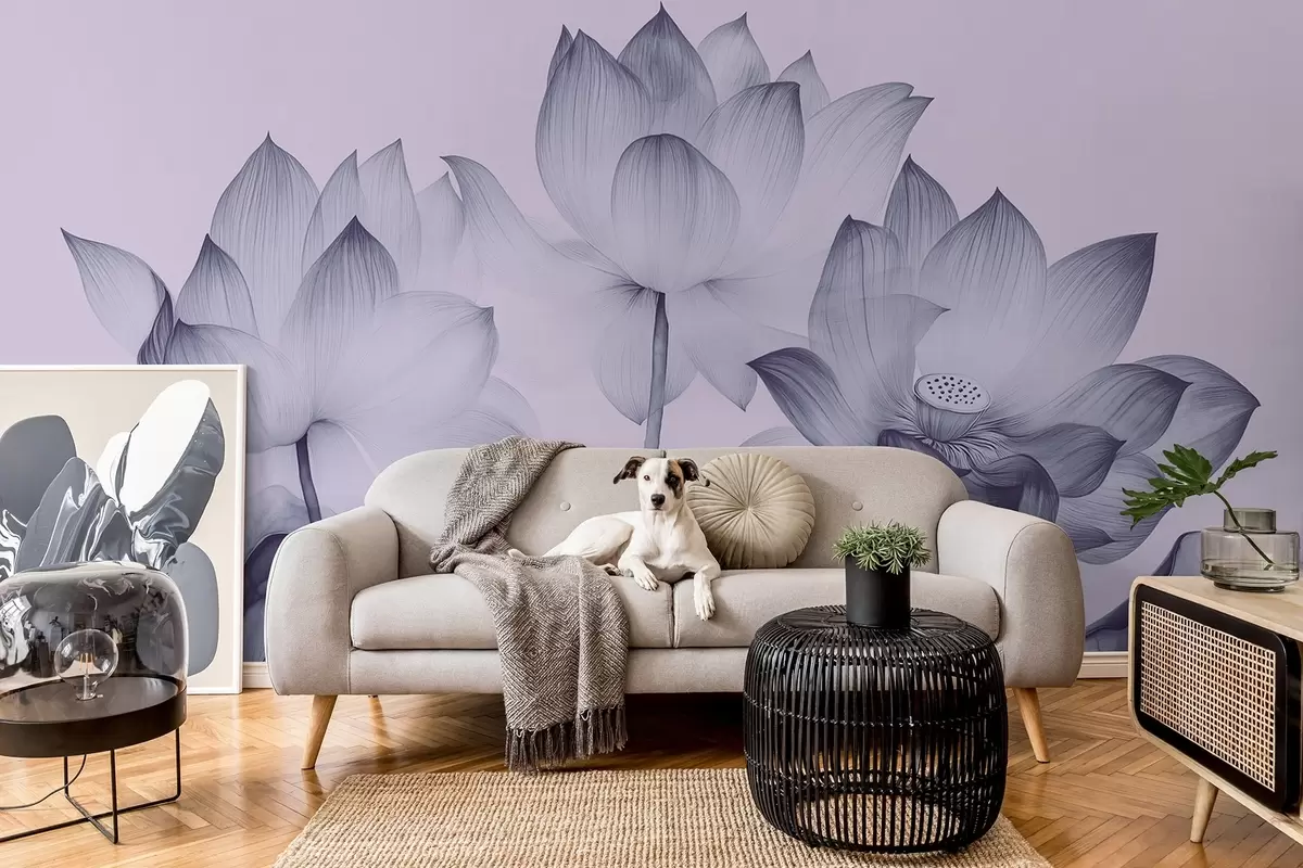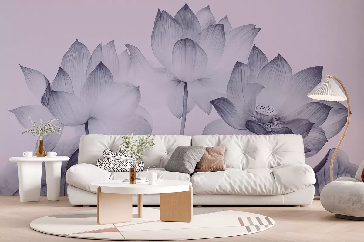 Fototapety Tri lotosy s listami v štýle čínskej maľby v modrej farbe Nr. w02146v2