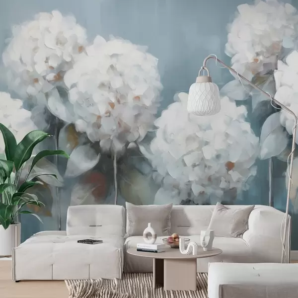 Fototapety Biele hortenzie na modrom pozadí Nr. w02159