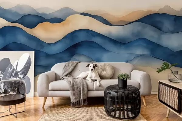 Fototapety Abstraktné modrobéžové vlny pripomínajúce hory Nr. w02196