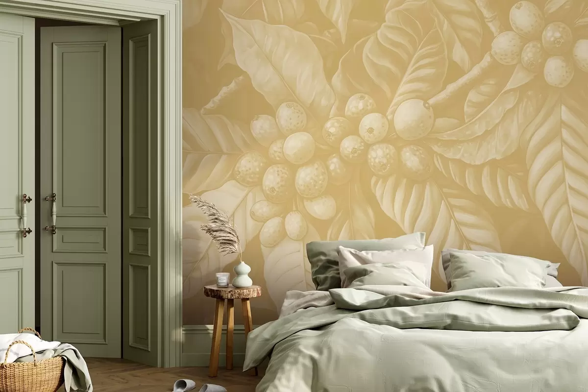 Fototapety Vetvy kávovníka s ovocím a tropickými prvkami v béžových odtieňoch Nr. w02209v1