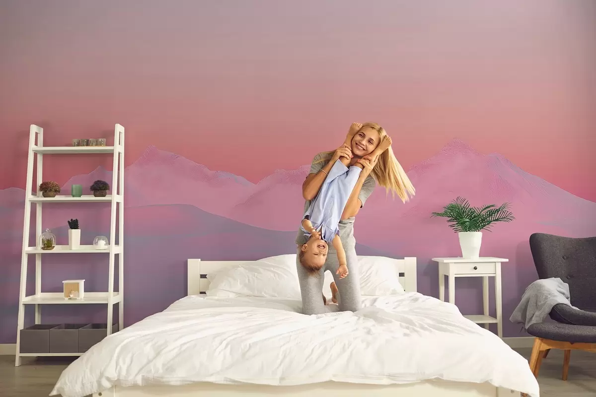 Fototapety Jemný malinový západ slnka na pozadí hôr a oblohy Nr. w02234