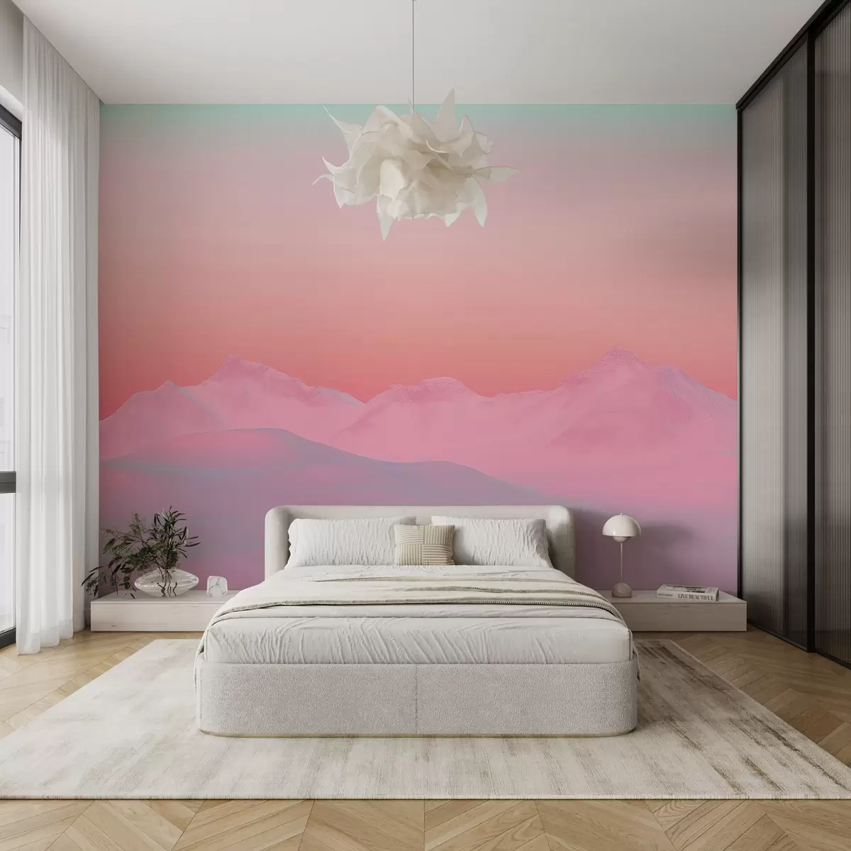 Fototapety Jemný malinový západ slnka na pozadí hôr a oblohy Nr. w02234