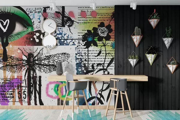 Fototapety Nápisy v štýle graffiti, kvety, postavy Nr. w02255