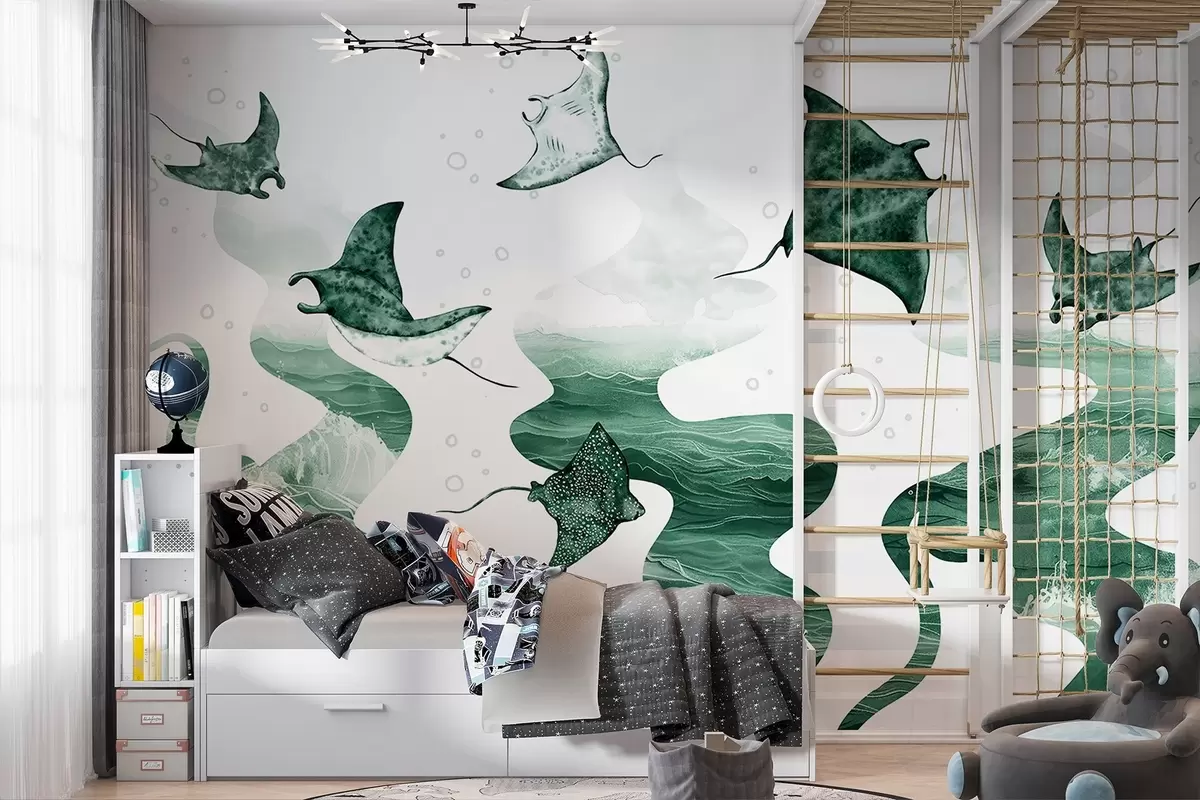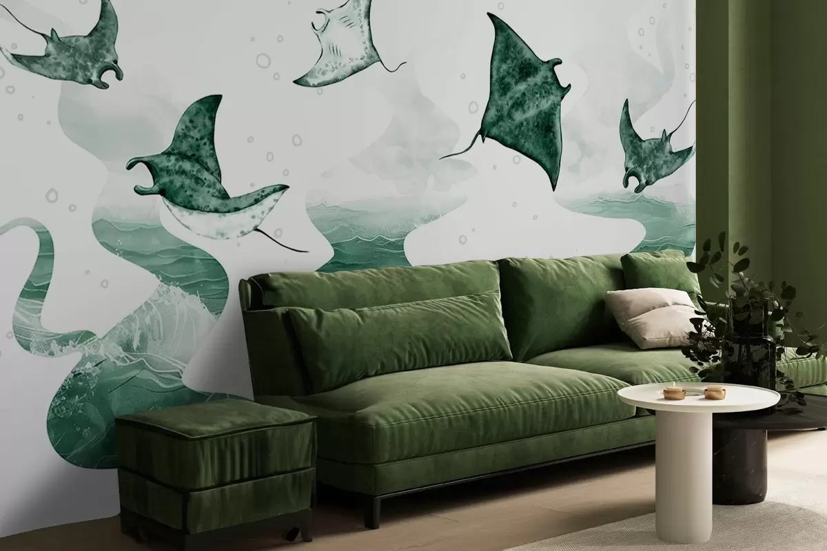 Fototapety Manta ray ryby, akvarel štýl, more, oceán, zelené farby Nr. w02266v2