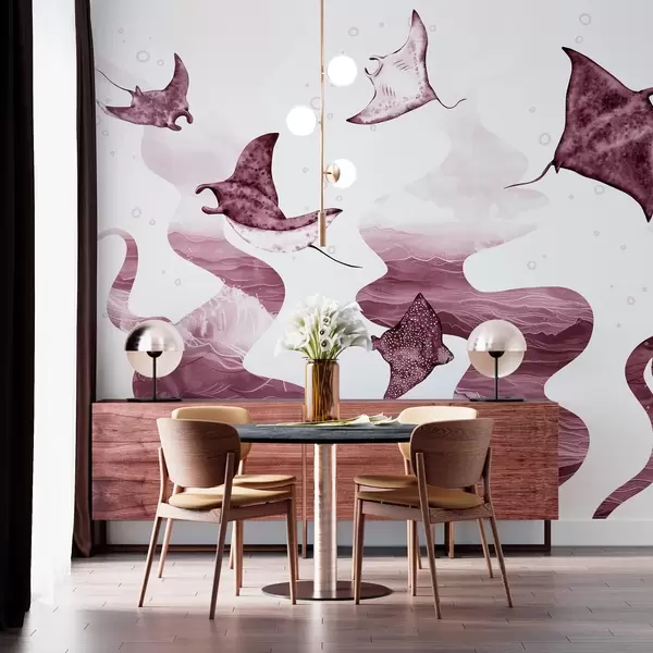 Fototapety Manta ray ryby, akvarel štýl, more, oceán, ružové farby Nr. w02266v3