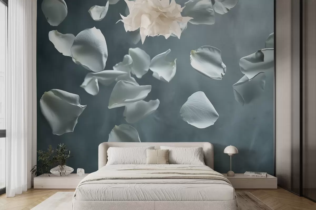 Fototapety Jemné okvetné lístky ruží padajúce nadol na tmavom pozadí Nr. w02289
