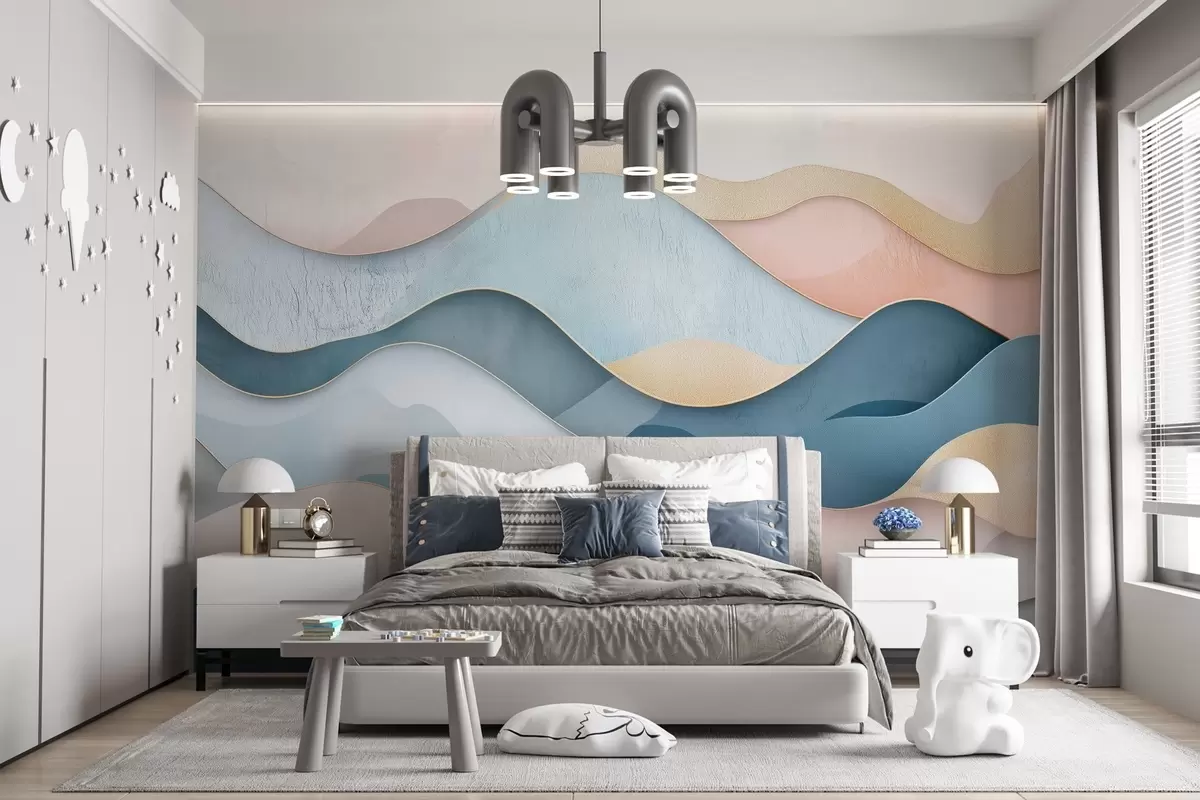 Fototapety Zvlnený vzor Art Deco v ružovej a modrej farbe Nr. w02290