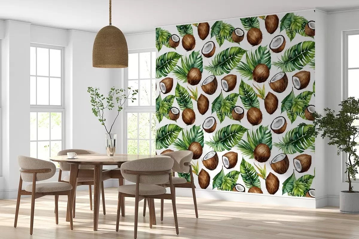 Fototapety tropický vzor s kokosovými orechmi a listami Nr. w02293