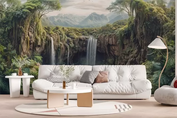 Fototapety veľká panoráma kaňonu so stromami a vodopádom Nr. w02294