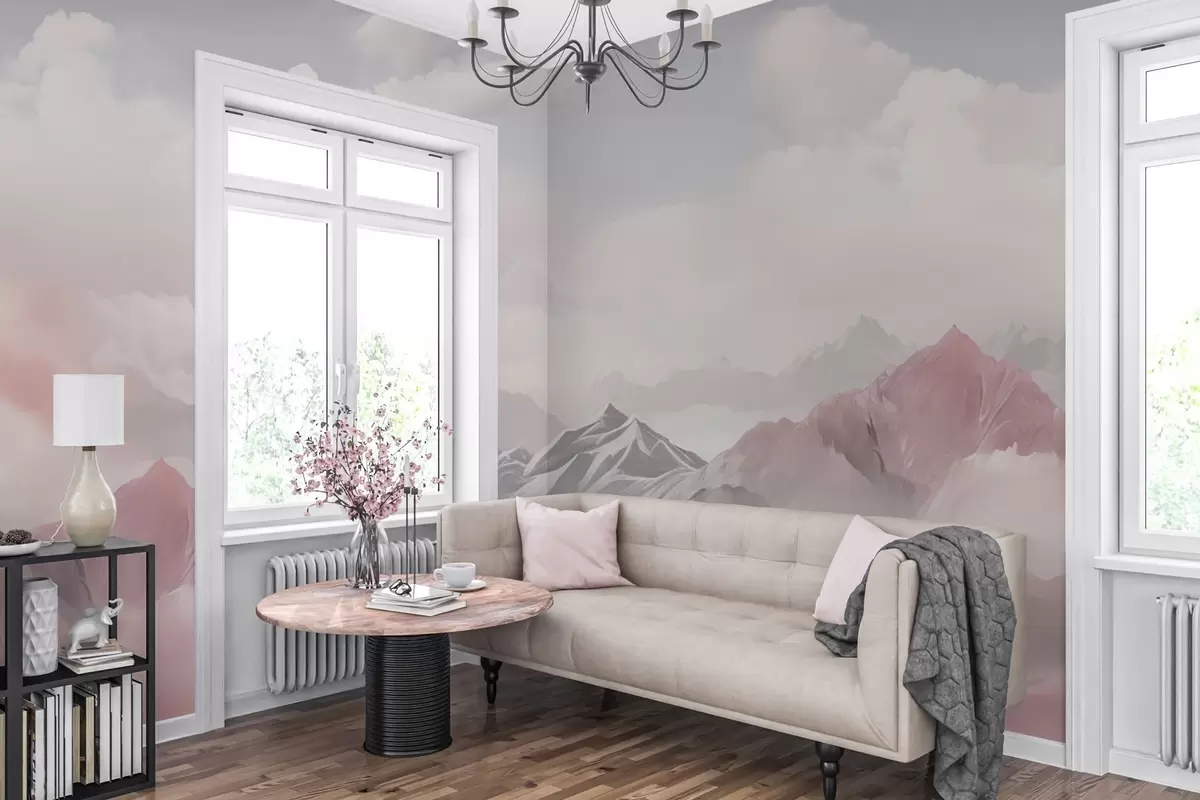 Fototapety Ružové hory v hmle a nadýchaných oblakoch Nr. w02296