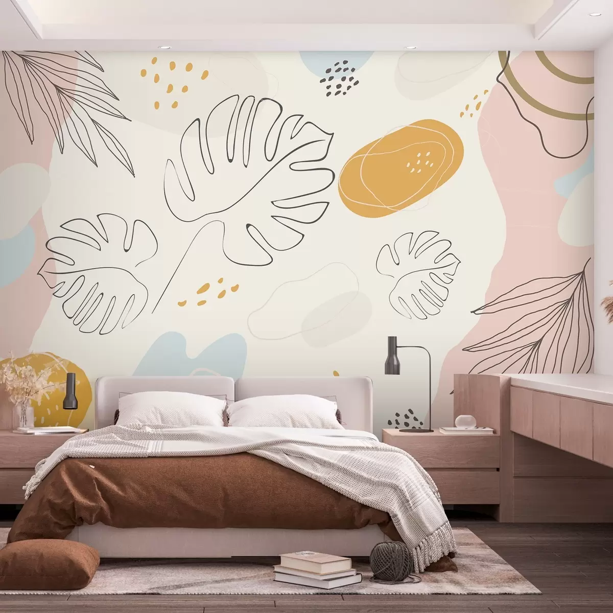 Fototapety Boho dizajn s listami a postavami v pastelových farbách Nr. w02322