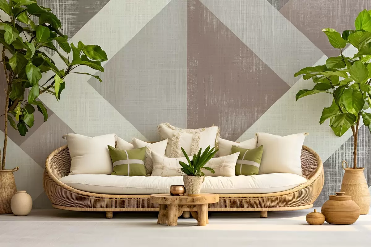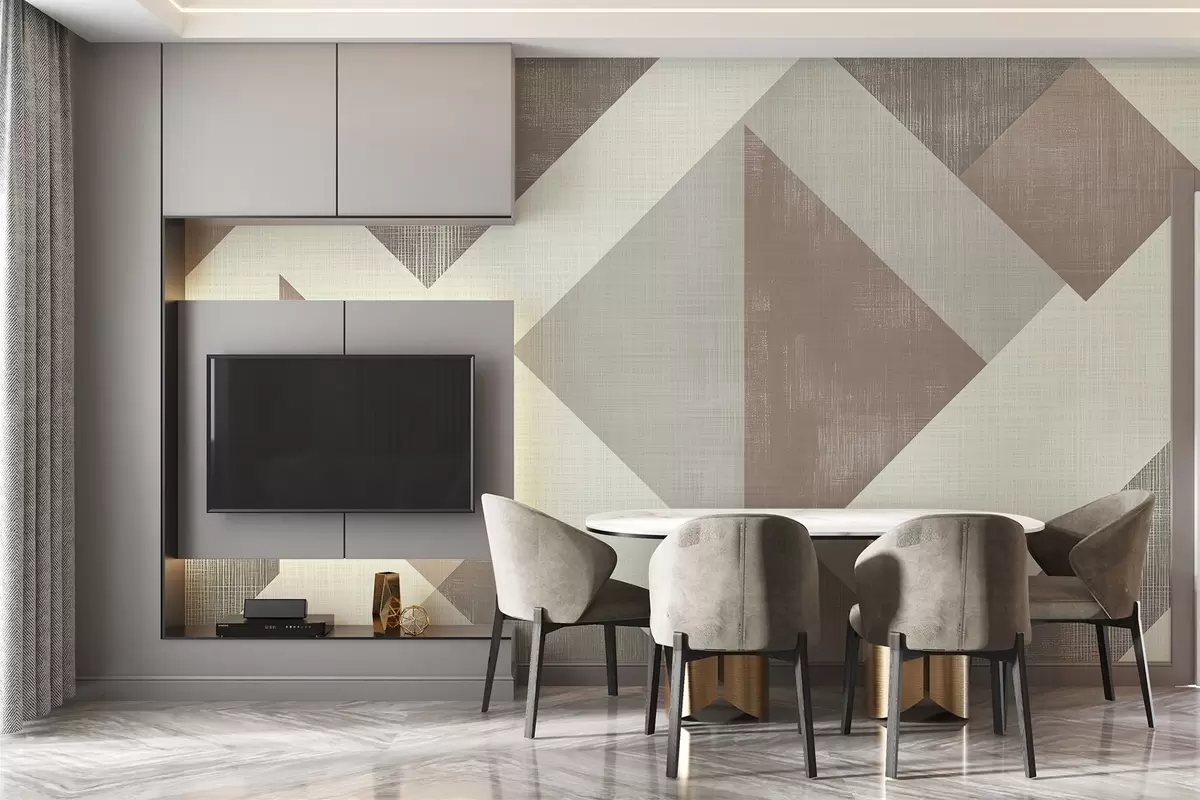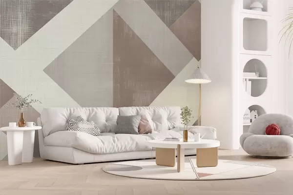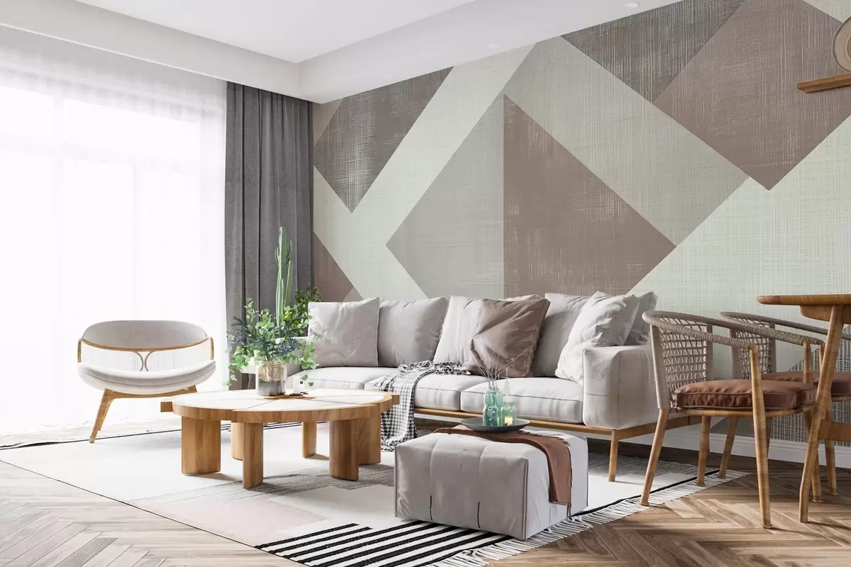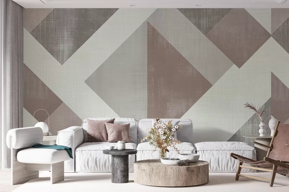 Fototapety Moderný geometrický dizajn tapety s prekrývajúcimi sa tvarmi v jemných béžových, zelených a sivých tónoch Nr. w02341v1