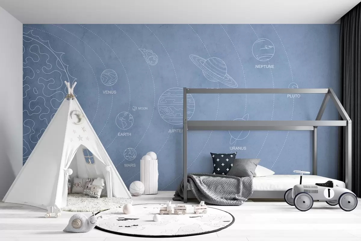 Fototapety Slnečná sústava v minimalistickom štýle na modrom textúrovanom pozadí Nr. w02344v1