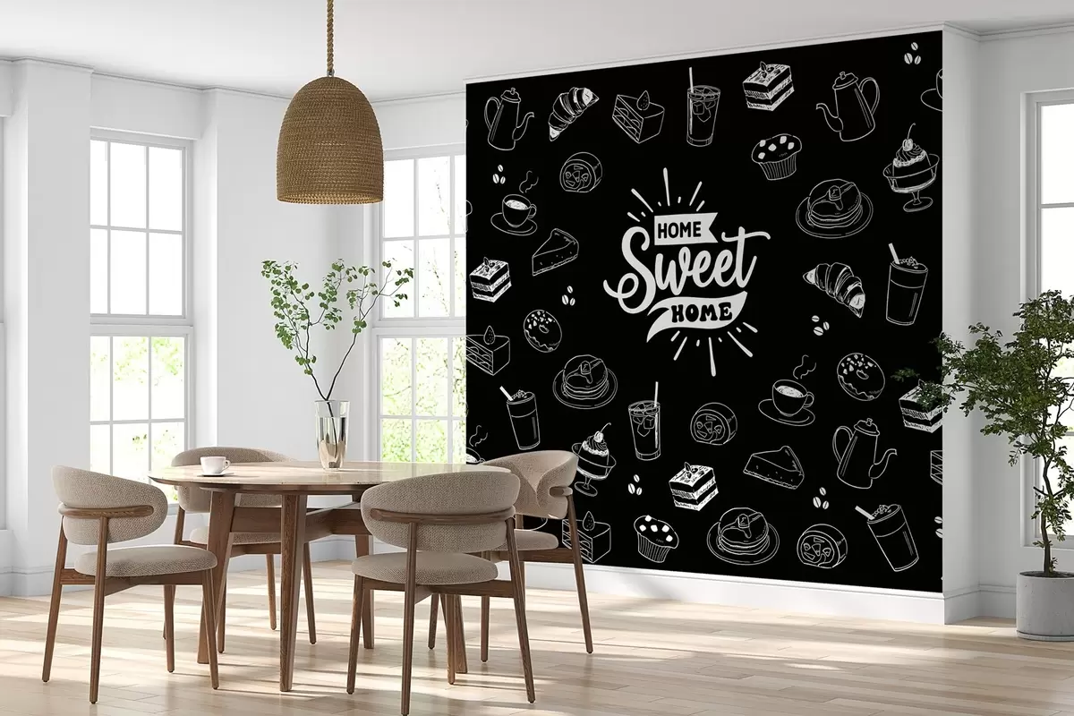 Fototapety čierne tapety do kuchyne s bielymi vzormi Nr. w02349