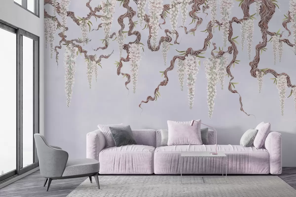 Fototapety Ružová vistéria na svetlom, pastelovom grunge pozadí Nr. w02372v2