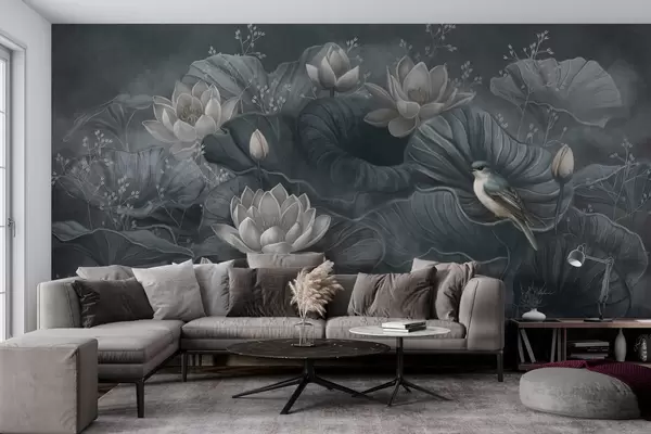 Fototapety Báječné lotosové kvety s listami a vtákom Nr. w02407