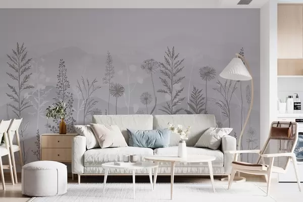 Fototapety tapety v ekologickom štýle, divoké kvety v sivých tónoch Nr. w02443