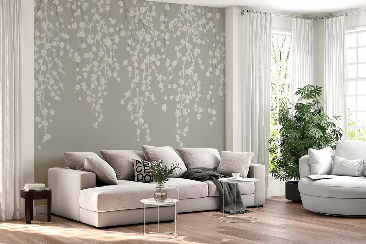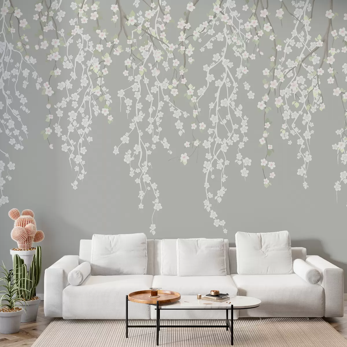 Fototapety Plynúce jemné vetvičky s kvetmi na sivom pozadí Nr. w02479v1