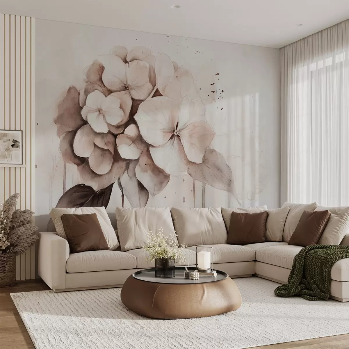 Fototapety Kresba hortenzie, akvarelový štýl, béžové farby Nr. w02483