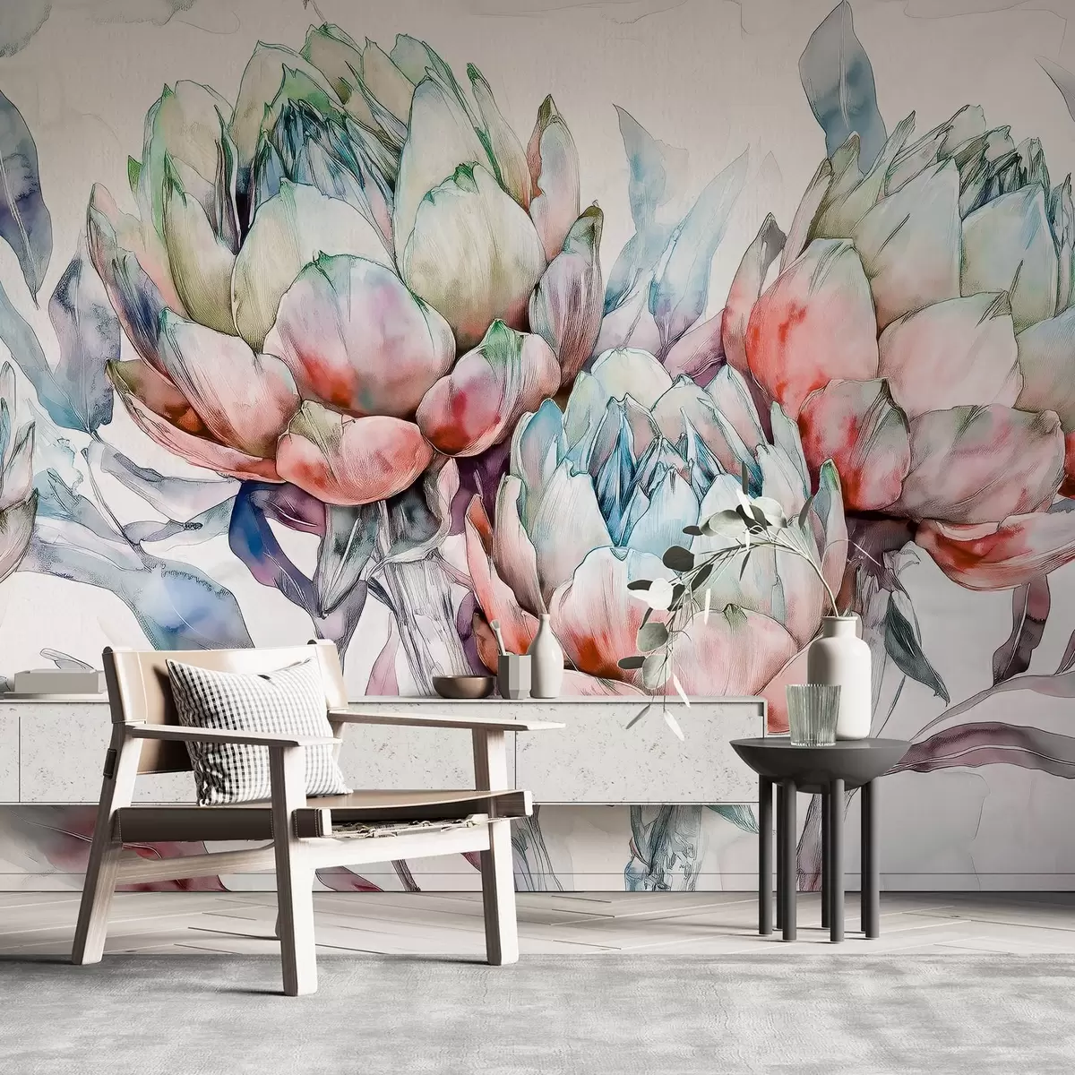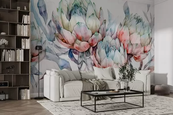 Fototapety Artičoky kresba, akvarel štýl, kvetinové, červená, fialová, zelená Nr. w02484v1