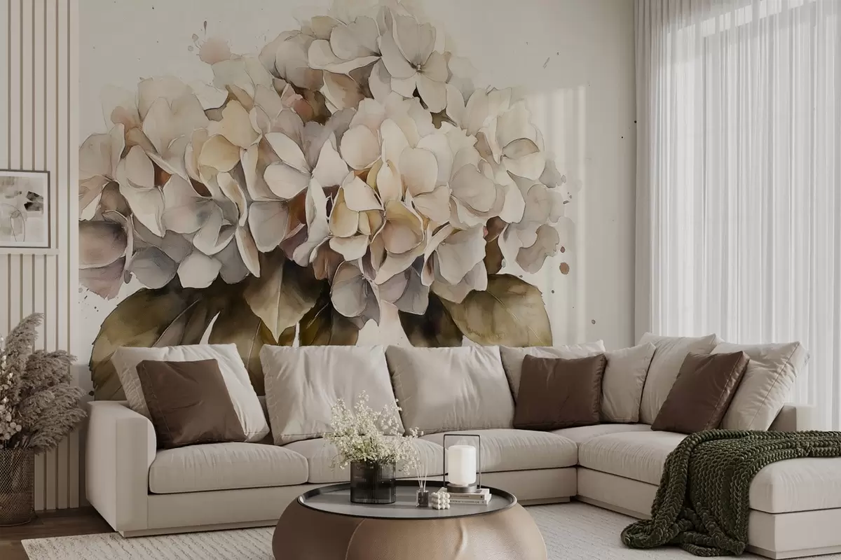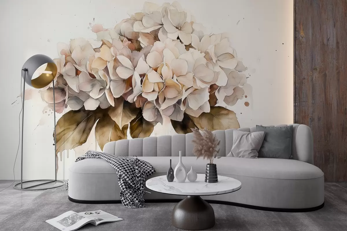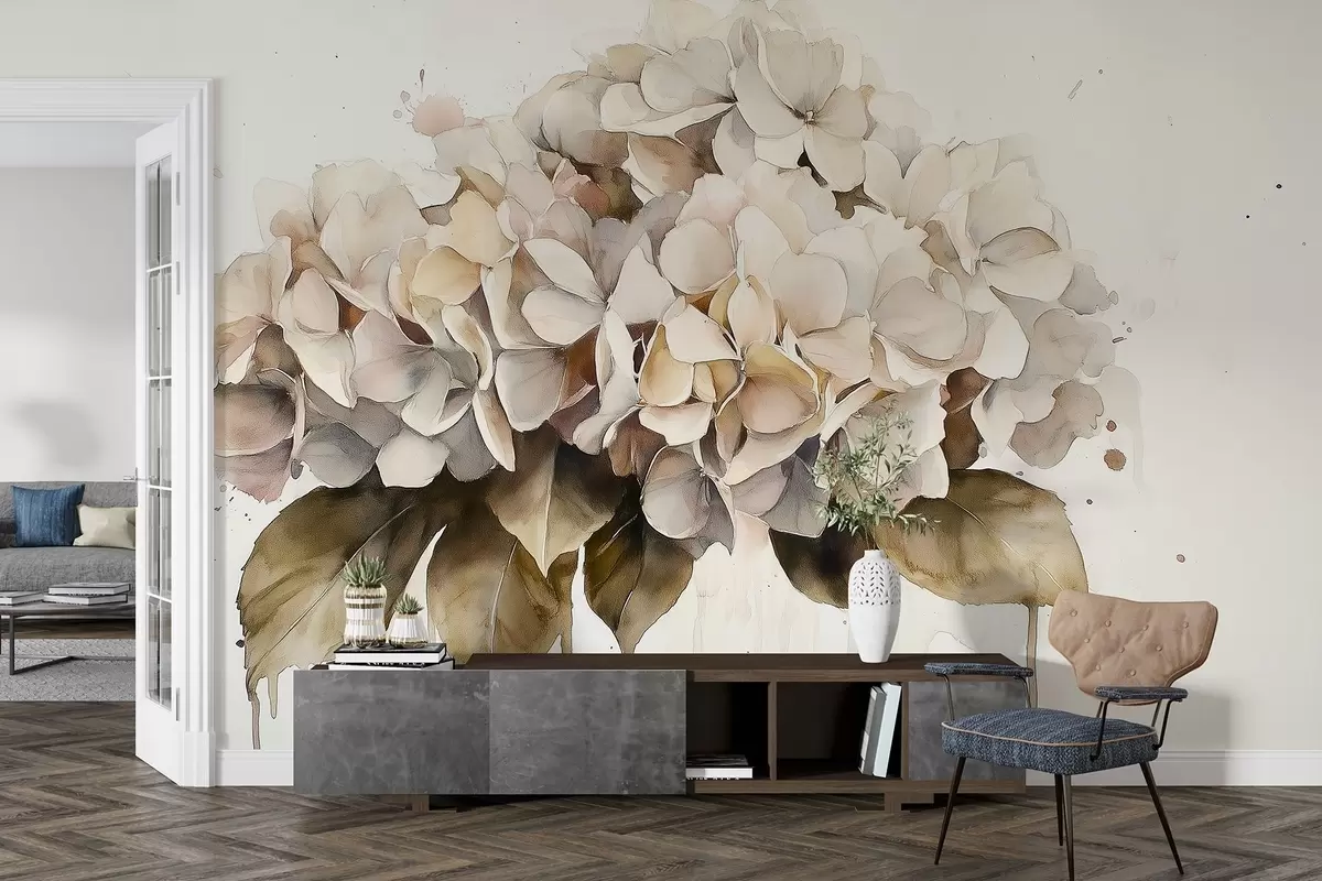 Fototapety Akvarelový štýl kresby kvetu hortenzie, béžové farby Nr. w02485