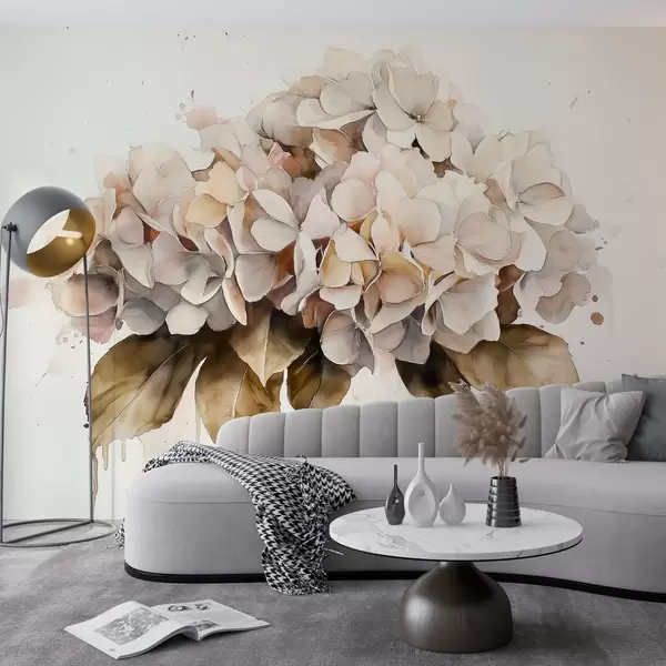 Fototapety Akvarelový štýl kresby kvetu hortenzie, béžové farby Nr. w02485
