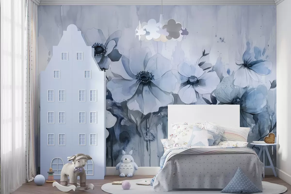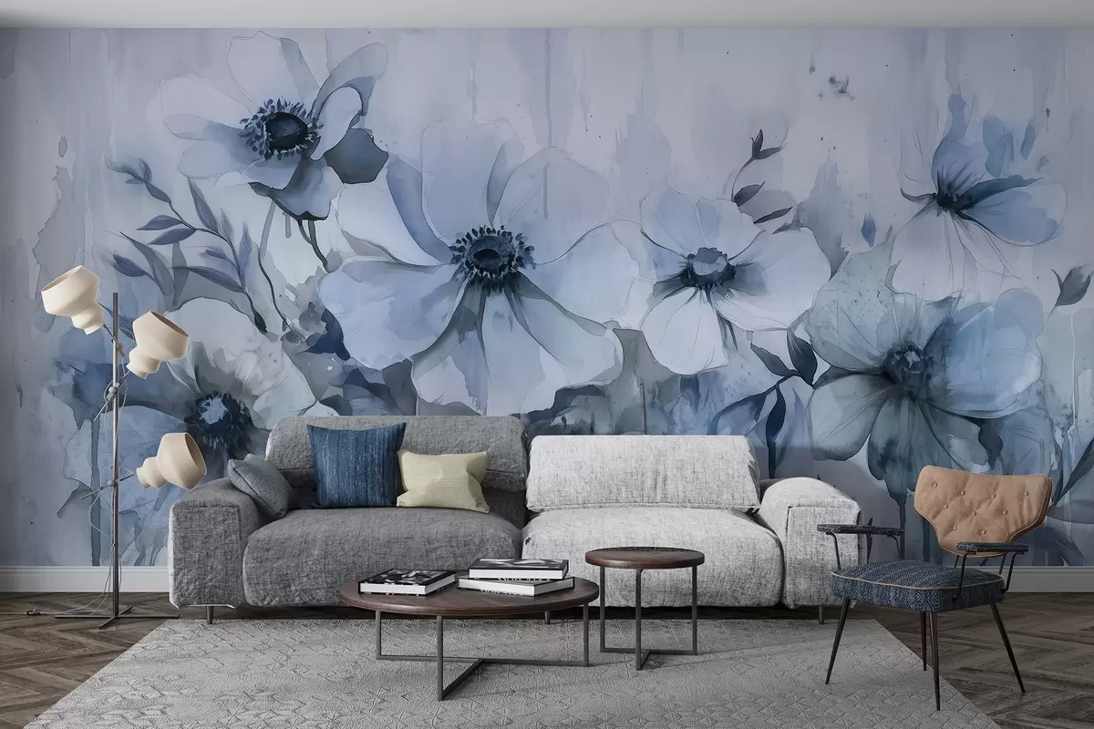 Fototapety Rustikálne kvety, akvarelový štýl kresby, modré farby Nr. w02487v1