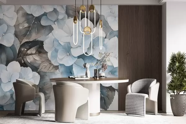 Fototapety Kvety hortenzie, akvarelový štýl kresby, modré farby, kvetinové Nr. w02488v1