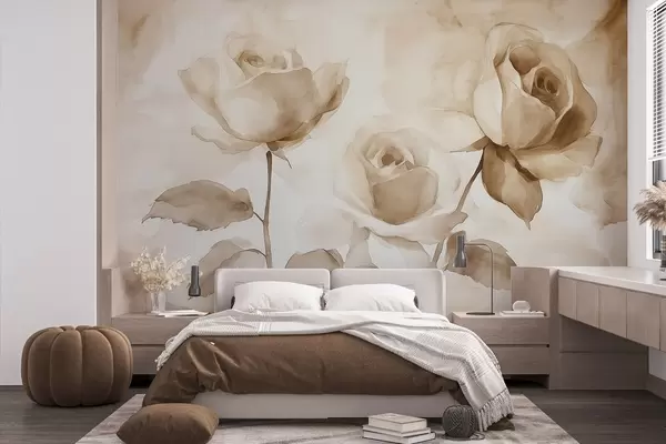 Fototapety Béžové ruže, kvety, mäkké akvarelové kresby, rustikálne, bohémske Nr. w02490